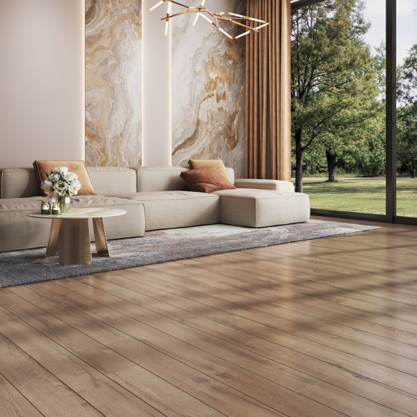 Изюминка коллекции — полуглянцевое покрытие в сочетании с доской зауженного формата.