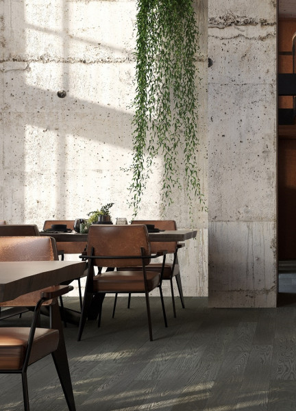 Дуб Средиземноморский — оттенок статного деревянного пола с характером для такого же интерьера. Темные глубокие оттенки способны на контрасте выгодно подчеркнуть светлую мебель и прекрасно сочетаются с такой же характерной темной и массивной мебелью.
